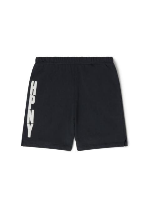 Orange shorts with orange logo patch sewn at back. Elasticicated waistband. The outer fabric of this garment is made with 50% recycled cotton and 50% organic cotton material. 100% Cotton 100% Polyester Model Omar Diagne wears size 48 Height: 6’ 1” (185 cm) Waist: 28” (73 cm) Hips: 36” (91 cm) Product ID: HMCI011C99JER0012200
