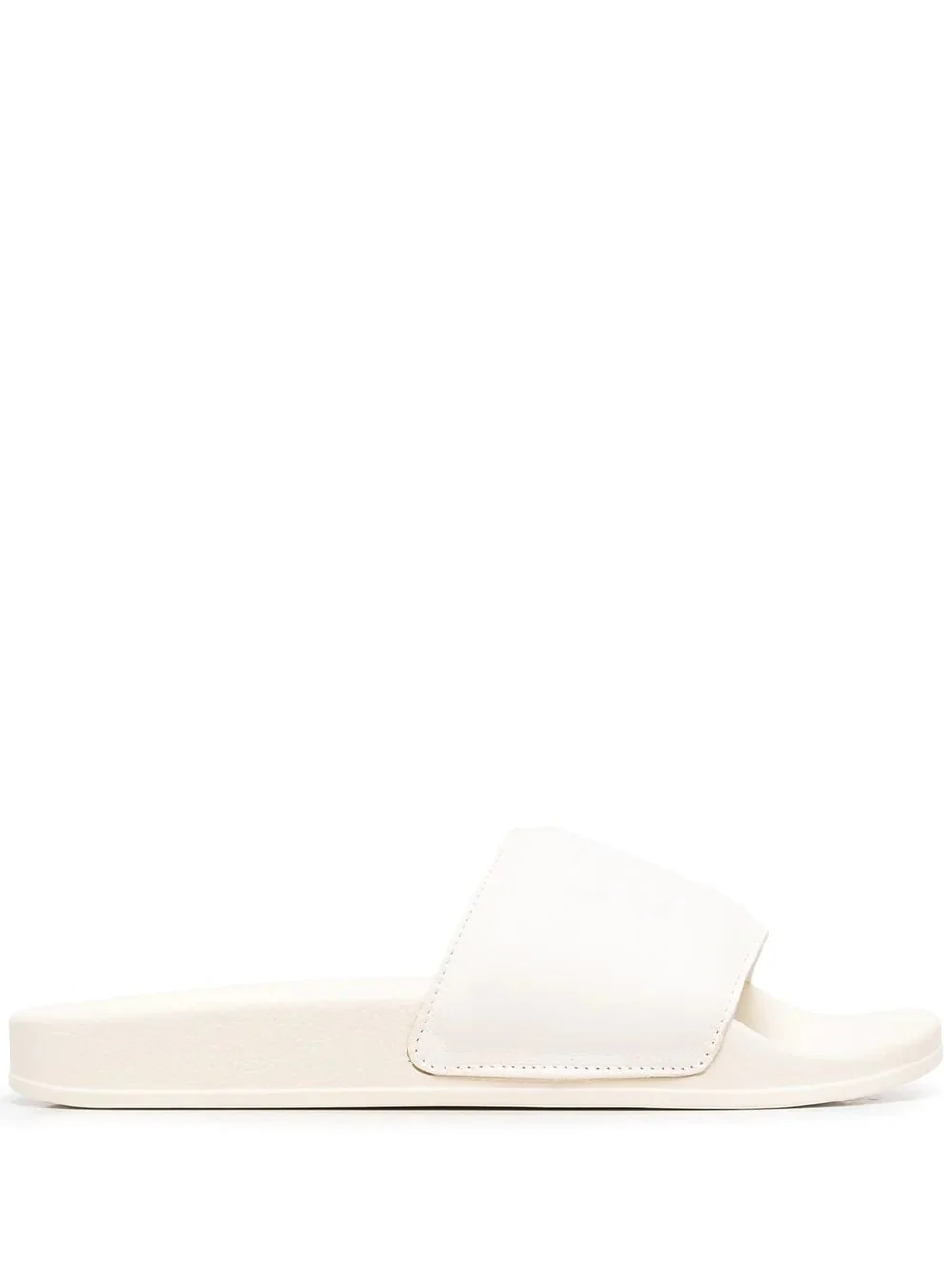 tonal logo debossed slides white round toe debossed logo branded insole flat rubber sole Made in Italy Composition Lining: Rubber 100% Sole: Rubber 100% Outer: Calf Leather 100% SIZE & FIT Measurement HEEL 0.78 in(2 cm) Sole height 0.59 in(1.5 cm)