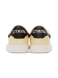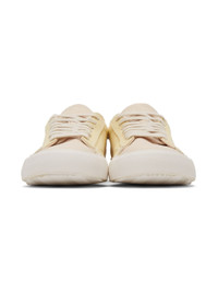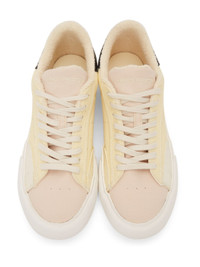 Low-top paneled canvas sneakers in tones of off-white and beige. Grained leather heel counter in black featuring logo printed in white. · Lace-up closure in white · Padded tongue and collar · Tonal terrycloth lining · Treaded rubber sole in white Supplier color: Cream white Upper: textile. Sole: rubber.