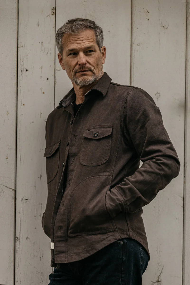 We take pride in our meticulous craftsmanship, exemplified in "The Anvil" Shirt Jacket. Unlike traditional two-dimensional patterns used for tops, we use an advanced 3D pattern to create this exceptional piece. By incorporating side panels as the third dimension, we achieve unparalleled control over the garment's shape, resulting in an impeccable fit. Complete with vintage-inspired rounded chest and hand warmer pockets, cat-eye buttons, and Nylon lined cuffs, "The Anvil" Shirt Jacket effortlessly blends classic style with modern innovation. We took our 100% cotton 14oz Ecru denim and garment dyed them in a variation of earth tones for a palette that steps away from the world of indigo. This denim features a Green and white selvedge ID. Fit & Size The model is 5'11" and wearing size M