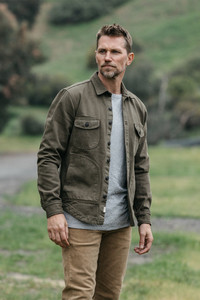 We take pride in our meticulous craftsmanship, exemplified in "The Anvil" Shirt Jacket. Unlike traditional two-dimensional patterns used for tops, we use an advanced 3D pattern to create this exceptional piece. By incorporating side panels as the third dimension, we achieve unparalleled control over the garment's shape, resulting in an impeccable fit. Complete with vintage-inspired rounded chest and hand warmer pockets, cat-eye buttons, and Nylon lined cuffs, "The Anvil" Shirt Jacket effortlessly blends classic style with modern innovation. We took our 100% cotton 14oz Ecru denim and garment dyed them in a variation of earth tones for a palette that steps away from the world of indigo. This denim features a Green and white selvedge ID. Fit & Size The model is 6'1" and wearing size M