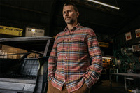 This new The Brace Shirt showcases the expertise of Japanese fabric mills. The subtle diamond pattern within the plaid on this textured flannel is a little hidden treasure that evokes a sense of vintage nostalgia. The loose weave and medium weight of this 100% cotton fabric allows plenty of airflow, so it will keep you warm on cool summer mornings and nights, but is light enough for warm afternoons. Vintage style cat’s eye buttons are the final touch of this American-made flannel. The Brace Vintage Diamond Plaid is available in Ruby, Emerald, and Sapphire. Fit & Size he model in the first picture is 6' and wearing the size M.