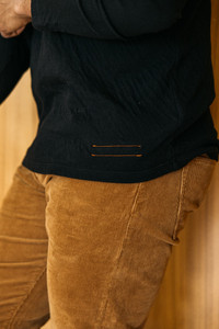 Looks can be deceiving. The soft look and thick drape of this fabric gives the sophisticated look of a sweater, while feeling as light and easy-wearing as a long sleeve tee. “The Drill” in double knit is not only something you look forward to wearing when you get home after a long day, but something you can go to work or dinner in and not look underdressed. To dress it up, this shirt is perfect for layering over our “The Ripper” button ups. Both “The Stamp” and “The Drill” adorn the signature Kato Brand orange stitch on the care tag, a subtle detail to be discovered by wandering eyes. Another detail that elevates above other standard tee shirts is the reinforced collar that will not stretch out or sag with use. These shirts are available in: Military Green, Navy, Black, and Heather Grey. Comfort is something Kato is known for, and we wanted to challenge ourselves by pushing the limits of comfort even further. You be the judge. Fit & Size Model is 6' and wearing a size M.
