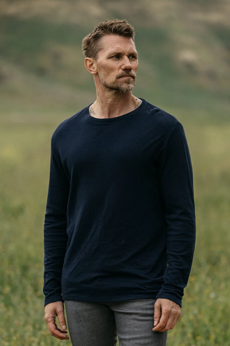 Looks can be deceiving. The soft look and thick drape of this fabric gives the sophisticated look of a sweater, while feeling as light and easy-wearing as a long sleeve tee. “The Drill” in double knit is not only something you look forward to wearing when you get home after a long day, but something you can go to work or dinner in and not look underdressed. To dress it up, this shirt is perfect for layering over our “The Ripper” button ups. Both “The Stamp” and “The Drill” adorn the signature Kato Brand orange stitch on the care tag, a subtle detail to be discovered by wandering eyes. Another detail that elevates above other standard tee shirts is the reinforced collar that will not stretch out or sag with use. These shirts are available in: Military Green, Navy, Black, and Heather Grey. Comfort is something Kato is known for, and we wanted to challenge ourselves by pushing the limits of comfort even further. You be the judge. Fit & Size Model is 6'1" and wearing a size M.