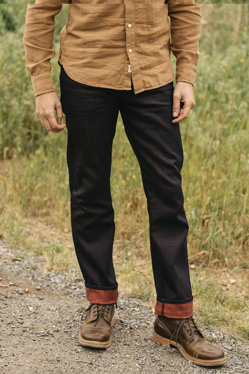 Slubby 13oz 4-WAY STRETCH SELVEDGE ™ boasts a distinctive colored weft that boldly sets it apart. You can cuff these jeans for maximum effect or leave them uncuffed allowing just the subtle tint of the weft showing through the denim for a slight shift in perspective. Our Etched denim is a perfect example of when quality and heritage meet inspiration. The crosshatch slub texture in this denim is only found in the highest quality Japanese denim. The skill and equipment needed to produce this kind of denim is very rare and only a handful of Mills in the world can achieve this. - 96% Cotton 4% Polyurethane Fit & Size Fit Slim Fit | See Fit Guide here Size Model in the first picture is 6'1" and wearing a size 32