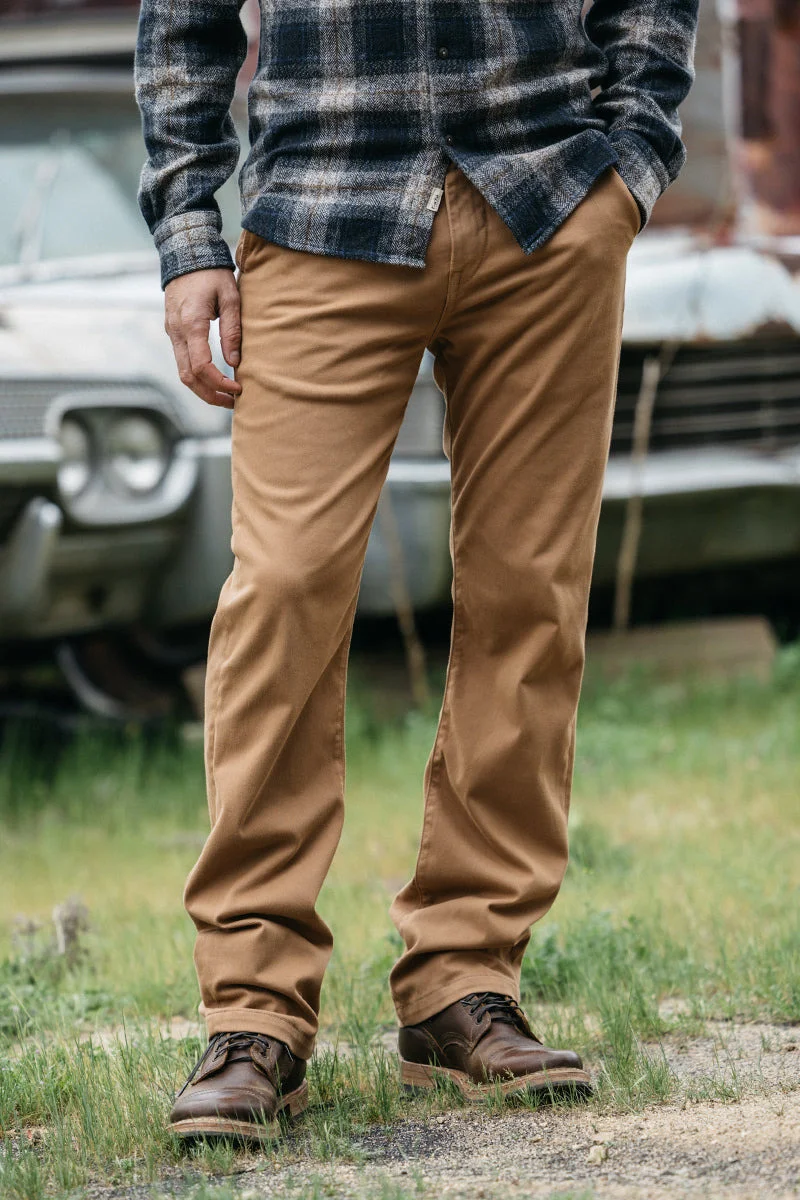 Our latest cut in the chino lineup, The Pipe Straight chino is a more relaxed tapered iteration of our The Axe Slim Chino. Featuring all the classic details of our popular chinos, the sewn military style waist button, the zip fly and welt pocket on the back. The Pipe Chino now also features slanted on side pockets with the signature Kato “K” stitch. Our Garment dyed Denit® offers a fresh perspective on loungewear. Denit® combines the cozy, soft feel of your favorite knitted sweatpants with the texture of a woven fabric. This fabrics ability to rebound after being stretched ensures a fit that won't bag out or sag over time, making chinos that office friendly and road ready. - 71% COTTON / 21% POLYESTER / 8% POLYURETHANE Fit & Size Model is 6'1 and wearing a size 32. Inseam: 31 3/4