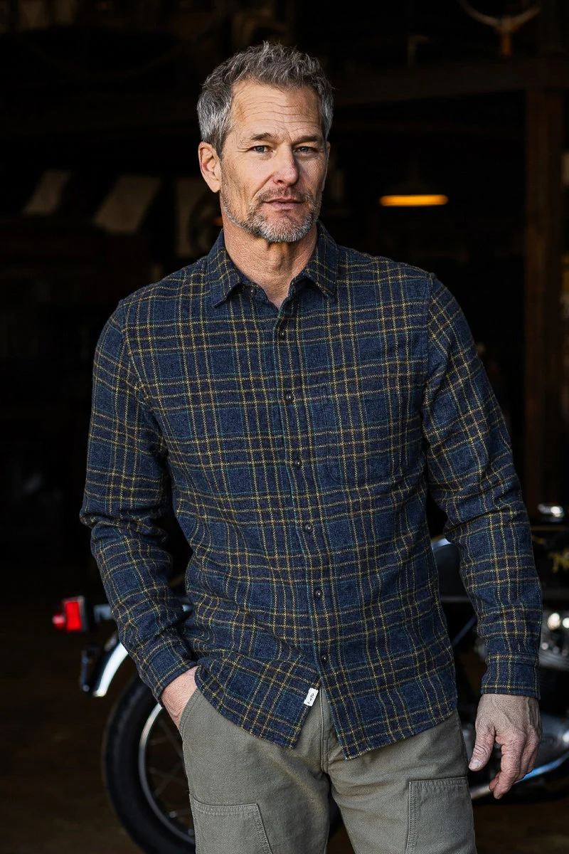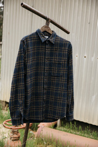 A rugged and cozy, modern slim-fit, button-up. This season we have elevated our staple button-up with an air of twisted sophistication. The Ripper Shirt in Twisted Plaid is a special Japanese fabric that gives a natty nod to English woolen fabrics. The technique of twisting multiple colors of yarns together before weaving gives a very textured appearance, similar to a tweed fabric. We've retained the fabric's natural softness by forgoing brushing. Crafted from medium-weight 100% cotton, it's an ideal choice for a comfortable overshirt during brisk winter days. Fit & Size Model is 5'11" and wearing a size M.