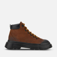 - Men's winter boots - Made in Italy - Suede upper - Brushed greased finishing - Back pull with H monogram - Fabric lining (80% wool, 20% polyamide) - Memory foam insole 0.3 ins - EVA outsole - Perceived height 2.2 ins - Maintenance and care cards included - Fabric dustbag included New must-have for contemporary urban style, these trekking-inspired boots feature a lugged outsole with milleraies detailing. Designed for optimal grip, the tread comes with external H-shaped blocks. Featuring a warm wool lining with houndstooth pattern, the upper in greased suede comes with an upper piping in padded nappa leather. The prominent toe and heel add character and three-dimensionality to this wintery taste style, enhanced by a branded pull on the back. The memory foam insole guarantees a cushioned fit. MOD. HXM6190FC10SBX64H6