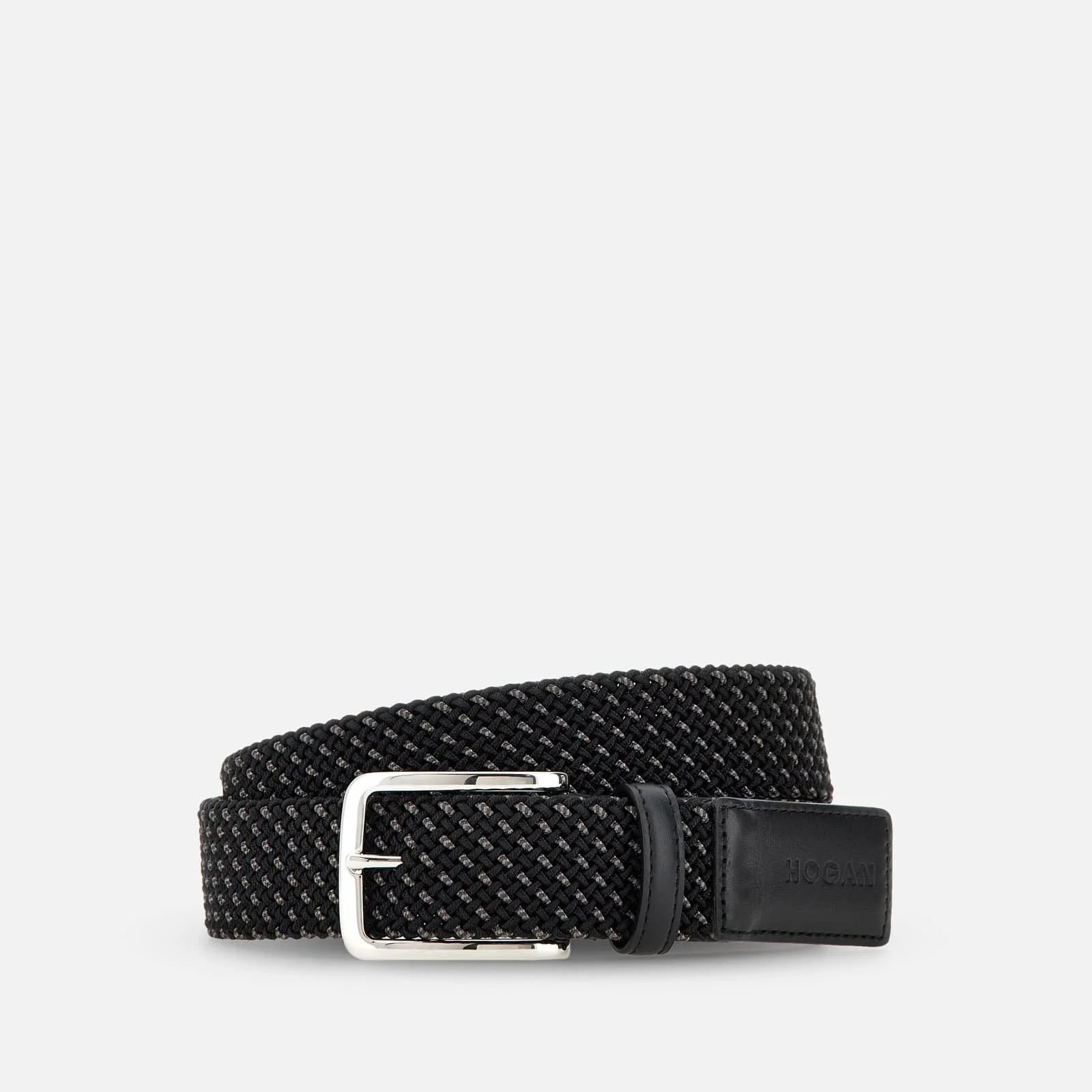 - Men's Hogan belt - Made in Italy - Item crafted in fabric - Leather inserts - Metal buckle - Stamped Hogan logo - Width 1.4 ins - Maintenance and care cards included - Fabric dustbag included Belt in elastic tape and leather with stamped Hogan logo and metal buckle. MOD. KFMC00P1100A269996