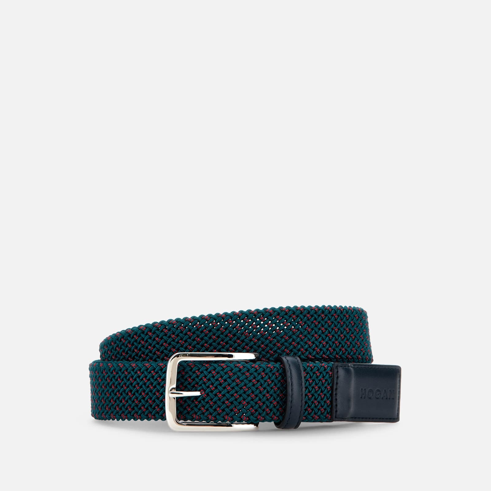 - Men's Hogan belt - Made in Italy - Item crafted in fabric - Leather inserts - Metal buckle - Stamped Hogan logo - Width 3.5 cm - Maintenance and care cards included - Fabric dustbag included Belt in elastic tape and leather with stamped Hogan logo and metal buckle. MOD. KFMC00P1100A269994