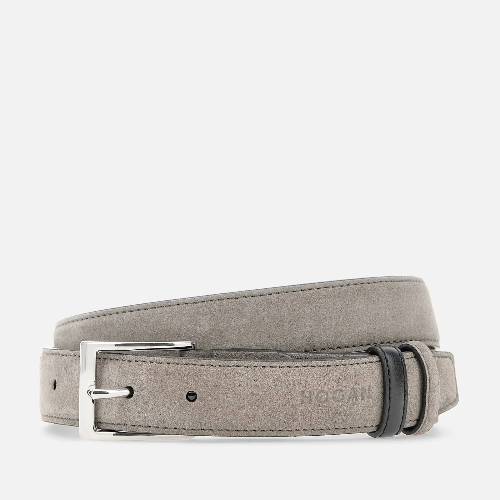 - Men's belt in suede - Item crafted in suede - Smooth leather loop - Metal tongue buckle - Stamped Hogan logo - Width 1.2 ins - Maintenance and care cards included - Fabric dustbag included Belt in suede with tongue buckle. A versatile and timeless accessory, with stamped Hogan logo. MOD. KFMC00N1101QA3003X