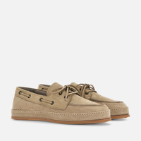 - Men's Hogan H683 Boat Shoes - Made in Italy - Suede and nubuck upper - Woven tie - Leather lining - Memory foam insole 0.3 ins - EVA outsole - Total height 1.2 ins - Maintenance and care cards included - Fabric dustbag included With a unique wrapped outsole and a sober yet sophisticated look, these boat shoes in suede and nubuck are characterized by a lower edge that matches the upper. A handcrafted construction and a lightweight platform rubber outsole, they feature the distinctive woven tie. Complemented by a memory foam insole, they are an urban must-have for detail-oriented enthusiasts.
