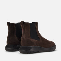 - Men's Hogan H600 Chelsea Boots - Made in Italy - Suede upper - Side elastic inserts - Memory foam insole 0.3 ins - Superlight EVA outsole - Total height 1.2 ins - Maintenance and care cards included - Fabric dustbag included A perfect mix of metropolitan elegance and sporty attitude, these men's Chelsea boots meet the need for a formal model with a sneaker's performance. The essential upper in suede combines with the Interactive³ backside. The superlight EVA outsole, both urban and sporty, reflects the two-faceted nature of this new contemporary hybrid. The memory foam insole guarantees a soft and comfortable fit. MOD. HXM6000EL70HG0S807