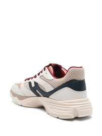 H665 sneakers Highlights - Beige/navy blue/dark red - Colour-block panelled design - Calf leather/mesh panelling - Front lace-up fastening - Padded ankle - Logo patch at the tongue - Round toe - Branded insole - Memory foam insole - Chunky rubber sole Made in Italy Composition Outer: Fabric 100%, Calf Leather 100% Lining: Fabric 100%, Calf Leather 100% Sole: Rubber 100% SIZE & FIT Measurement HEEL 1.77 in(4.5 cm) Sole height 0.59 in(1.5 cm)