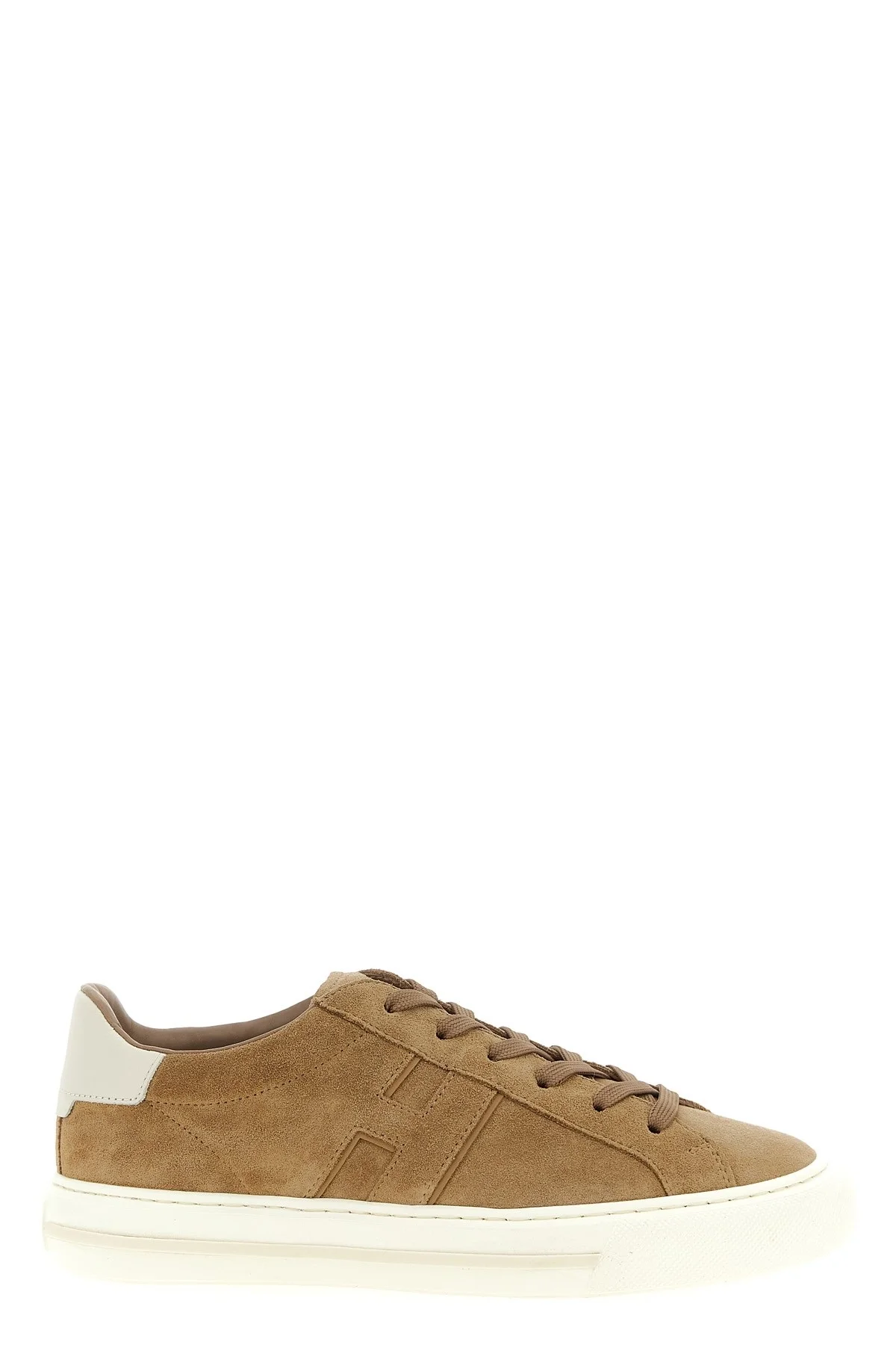 cod. HXM6910FU10UHO0ZCP 'H691' suede sneakers with embossed side logo, lace-up closure, slightly padded tongue, rubber sole. Color: Beige Size & Fit: UK MEN Composition: 100% calfskin leather (Bos Taurus) Made in: Albania