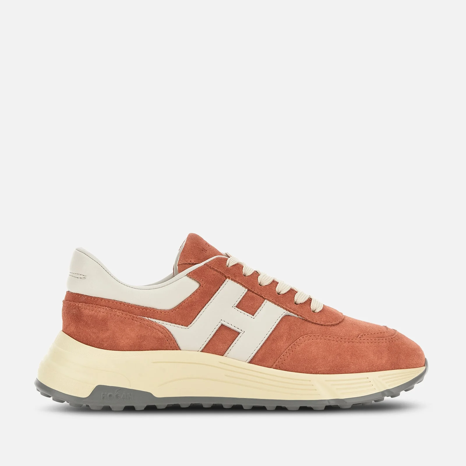 - Men's Hogan Hyperlight Sneakers - Made in Italy - Suede upper - Soft nappa leather detailing - Slanted side H in smooth leather - Memory foam insole 0.3 ins - Rubber outsole - Total height 1.8 ins - Maintenance and care cards included - Fabric dustbag included - Additional laces included Characterized by smooth and dynamic forms, the Hogan Hyperlight sneakers combine the jogging shoe lines and urban features. The suede upper with slanted H recalls iconic details of the brand. A dynamic style, featuring a memory foam insole and lightweight outsole with spikes.