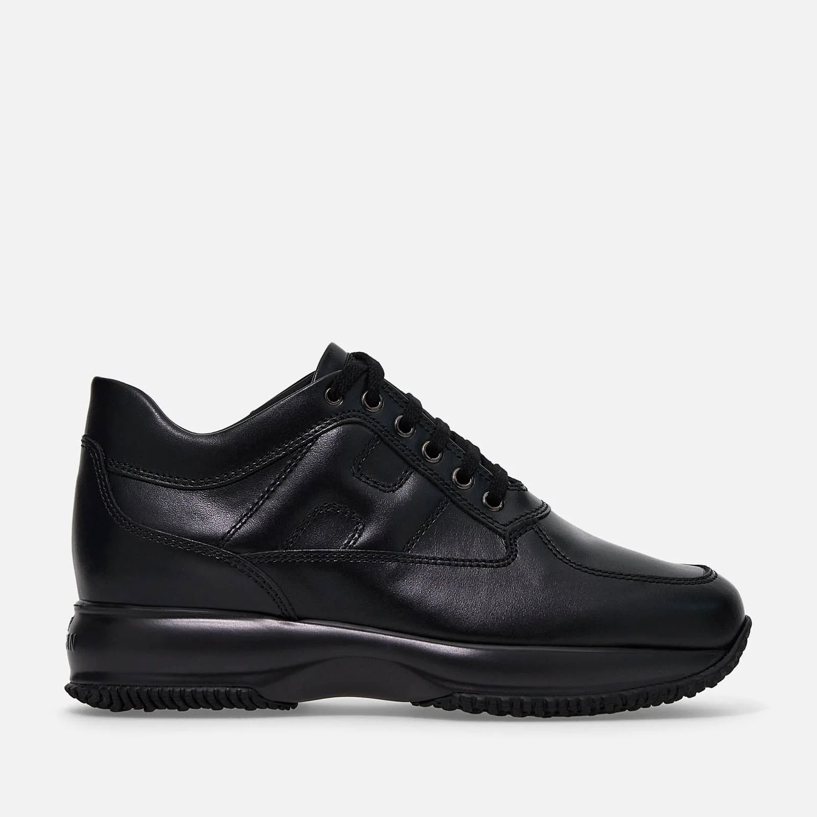 - Men's Hogan Interactive sneakers - Made in Italy - Leather upper - Exposed stitching - Padded Hogan monogram on the side - Removable internal footbed 2 cm - Rubber outsole - Care and maintenance tag included - Branded dustbag Interactive in leather with exposed stitching and padded H on the side. Casual-chic look. SIZE and FIT: wide fit, we advise you to opt for half a size smaller. MOD. HXM00N00010KLAB999
