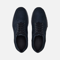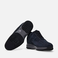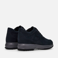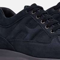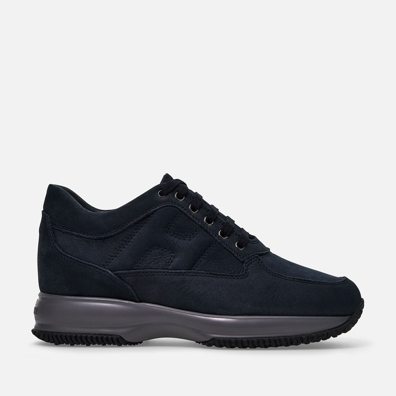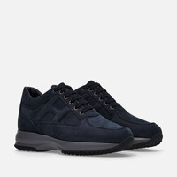- Men's Hogan Interactive sneakers - Made in Italy - Suede upper - Exposed stitching - Padded H on the side - Removable footbed 0.7 ins - Rubber outsole - Care and maintenance tag included - Designer dustbag included A timeless icon, Interactive was born in 1997 and affirms itself as an accessory of pure design. Reinvented season after season, diverse interpretations are created thanks to the use of a mix and match of materials and textures. The new version, in suede, is characterized by a side, padded H with perfect, casual-sporty style. SIZE and FIT: wide fit, we advise you to opt for half a size smaller. MOD. HXM00N000106RNU810