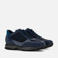 - Men's Hogan Interactive Sneakers - Made in Italy - Smooth leather and suede upper - Technical fabric inserts - Nubuck detailing - Exposed stitching - Padded side H - Removable insole 0.8 ins rise - Rubber outsole - Maintenance and care cards included - Fabric dustbag included A timeless icon, Interactive was created in 1997 and established as a pure design accessory. Refreshed season after season, it is suited to the most varied interpretations thanks to the mix & match of different textures and detailing. This new multimaterial version with a padded H on the side is perfect for a casual sporty style. MOD. HXM00N0Q101QBW8P32