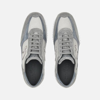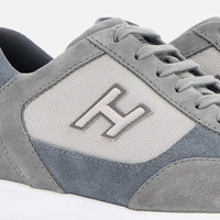 - Men's Hogan Interactive Sneakers - Made in Italy - Suede upper - Woven fabric inserts - Flocked side H - Exposed stitching - Removable insole 0.5 ins - Rubber outsole - Total height 2.2 ins - Maintenance and care cards included - Fabric dustbag included - Additional laces included Hogan Interactive is a real timeless icon, characterized by an elegant design and a lightweight outsole to guarantee a tall-and-slim look. Since 1997 it gets renewed with each collection still representing an absolute functional and contemporary luxury icon. These sneakers in suede, with woven fabric inserts, feature a flocked side H. Perfect for an urban casual look.
