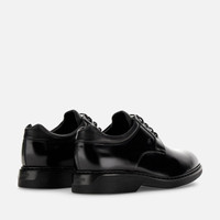 - Men's Hogan lace-ups - Made in Italy - Leather upper - Stamped Hogan monogram - Stitched welt - Memory foam insole - Rubber outsole - Maintenance and care cards included - Fabric dustbag included A fusion of classic style and casual taste, these leather lace-ups are characterized by smooth and essential lines. Enhanced by the stamped Hogan monogram, they feature a padded top edge softening the upper without compromising elegance. The slanted-cut heel makes the rubber outsole distinctive and dynamic, while the memory foam insole guarantees comfort and performance. MOD. HXM5760DU60QFYB999