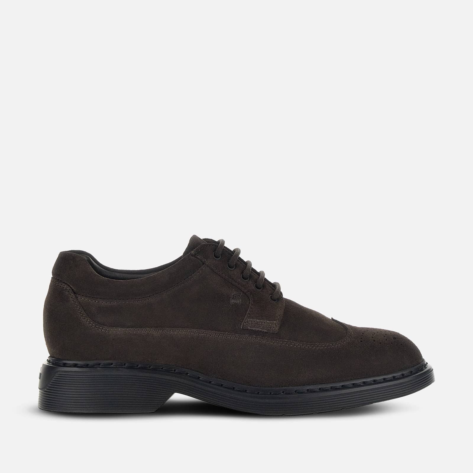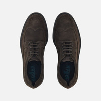 - Men's Hogan Lace Ups H576 - Made in Italy - Suede upper - Dovetail toe - Stamped Hogan monogram - Stitched welt - Memory foam insole 0.3 ins - Rubber outsole - Total height 1.8 ins - Maintenance and care cards included - Fabric dustbag included A fusion of classic style and casual taste, these men's lace ups in suede feature a dovetail toe. Enhanced by the stamped Hogan monogram, they come with a padded topline that gives softness to the upper without compromising its elegance. The slanted cut of the heel makes the rubber outsole distinctive and provides a dynamic feel, while the memory foam insole guarantees comfort and performance. MOD. HXM5760EP60HG0S807