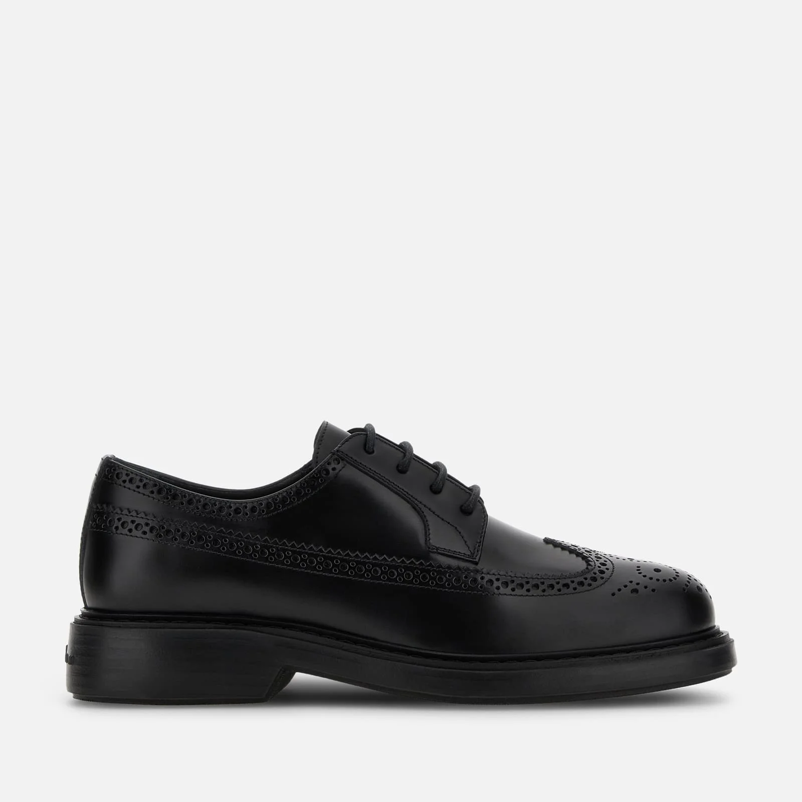 - Men's Hogan H704 Lace-ups - Made in Italy - Smooth leather upper - Brushed finishing - Memory foam insole 0.2 ins - Leather welt - EVA outsole - Total height 2 ins - Maintenance and care cards included - Fabric dustbag included Crafted in brushed leather, with elegant perforations and wing-tip, these derbies come with a lightweight rubber outsole with leather welt and Hogan logo embossed on the back. Versatile, with informal elegance, they are complemented by a comfortable memory foam insole.