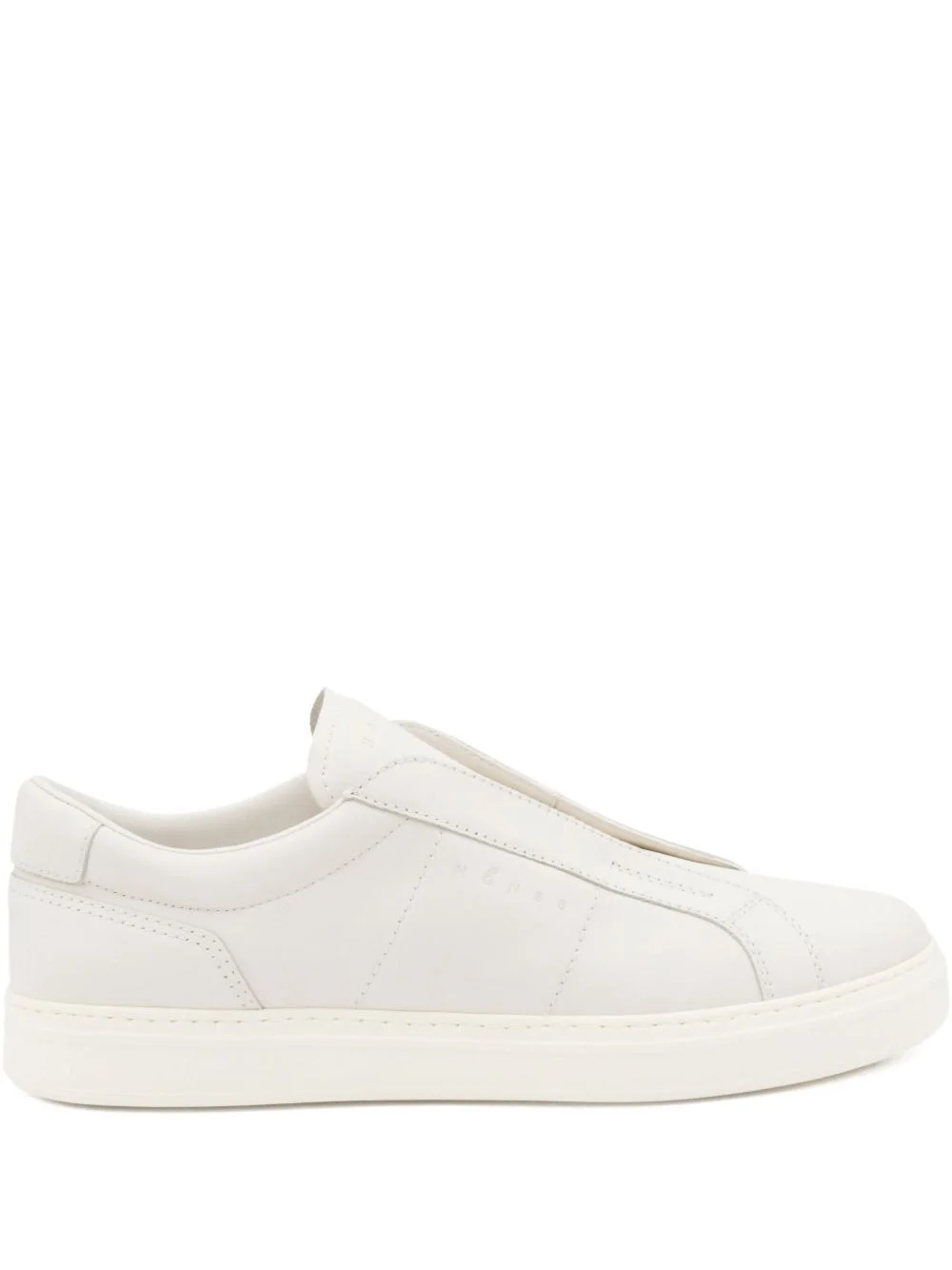 leather slip-on sneakers Highlights - White - Leather upper - Slip-on design - Tonal stitching detail - Flat sole - Embossed branding Made in Italy Composition Sole: Rubber 100% Lining: Fabric 100%, Leather 100% Outer: Leather 100%