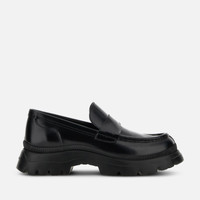 - Men's Hogan H692 Loafers - Made in Italy - Leather upper - Brush-off finishing - Shaped penny bar - Leather lining - Memory foam insole - Rubber lugged outsole - Total height 2.4 ins - Maintenance and care cards included - Fabric dustbag included Sculptural and chunky: a hiking-boot sole construction juxtaposed with a sophisticated shoe upper defines this new urban hybrid style. Crafted in abrasivato leather, the Hogan H692 loafer features an elegant shaped penny bar and a comfortable memory foam insole.