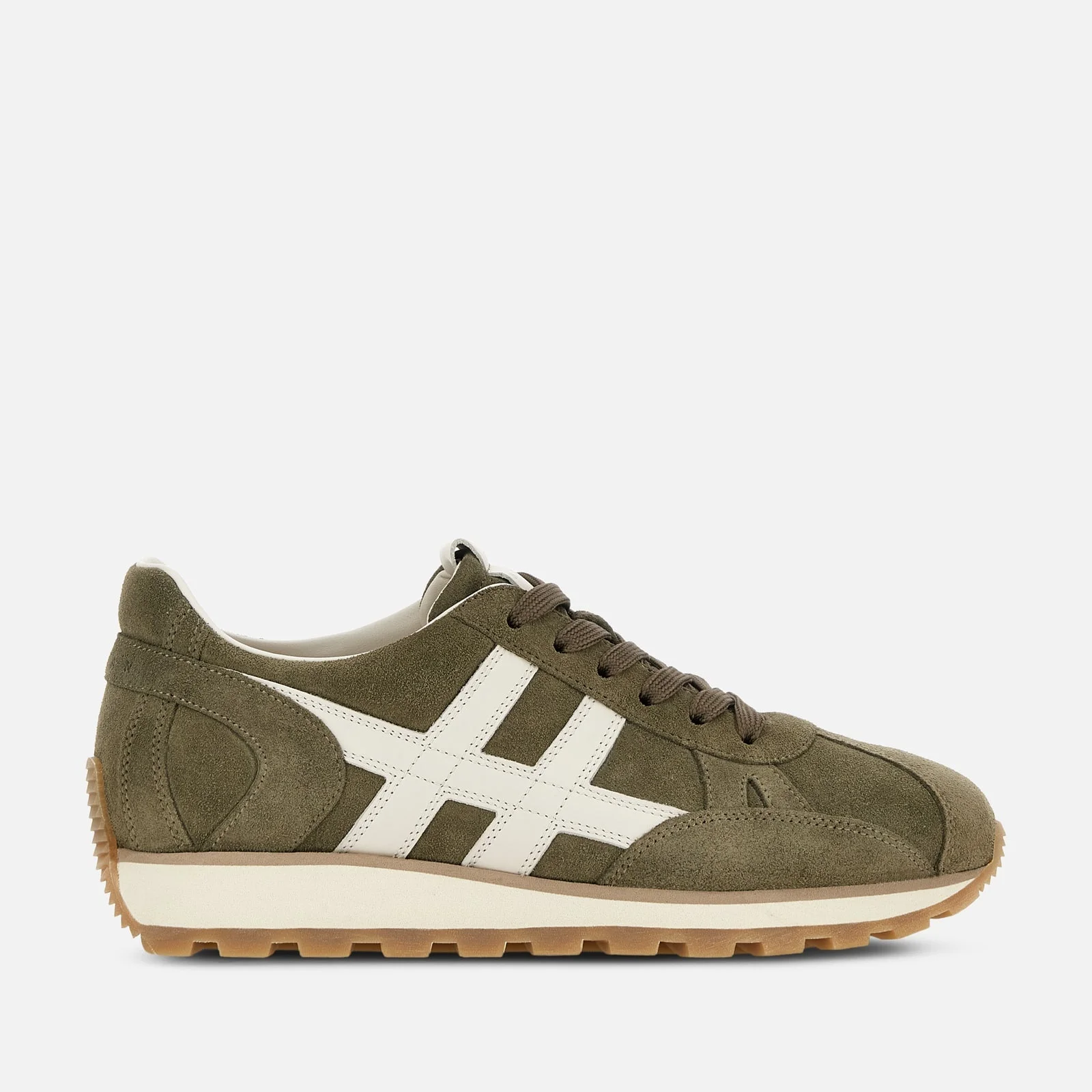 - Men's Hogan 86er Sneakers - Made in Italy - Suede upper - Smooth leather H applied on the side - Leather covered soft insole 0.2 ins - EVA outsole - Total height 1.6 ins - Maintenance and care cards included - Fabric dustbag included - Additional laces included A nod to the popular sneakers that helped define the year of the brand’s birth, the Hogan 86er come here with the iconic H applique detailing. The extralight outsole features a cleated tread that also designs the heel reinforcement. Complemented by a soft insole, these sneakers in suede are perfect for an easy-going and relaxed outfit.