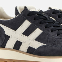- Men's Hogan 86er Sneakers - Made in Italy - Suede upper - Smooth leather H applied on the side - Leather covered soft insole 0.2 ins - EVA outsole - Total height 1.6 ins - Maintenance and care cards included - Fabric dustbag included - Additional laces included A nod to the popular sneakers that helped define the year of the brand’s birth, the Hogan 86er come here with the iconic H applique detailing. The extralight outsole features a cleated tread that also designs the heel reinforcement. Complemented by a soft insole, these sneakers in suede are perfect for an easy-going and relaxed outfit.