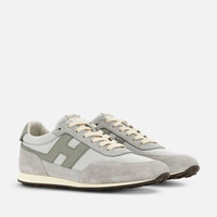 - Men's Hogan Athletic Sneakers - Made in Italy - Suede upper - Fabric inserts - Smooth leather side H and detailing - Memory foam insole 0.3 ins - Rubber outsole - Total height 1.4 ins - Maintenance and care cards included - Fabric dustbag included - Additional laces included Lightweight, dynamic and retro-athletic-inspired. The Hogan Athletic sneakers combine a super-soft upper and a vintage-style outsole, with tread characterized by H-shaped spikes. Crafted in suede and fabric, with the slanted H motif stretching toward the back of the upper, they are complemented by a memory foam insole.