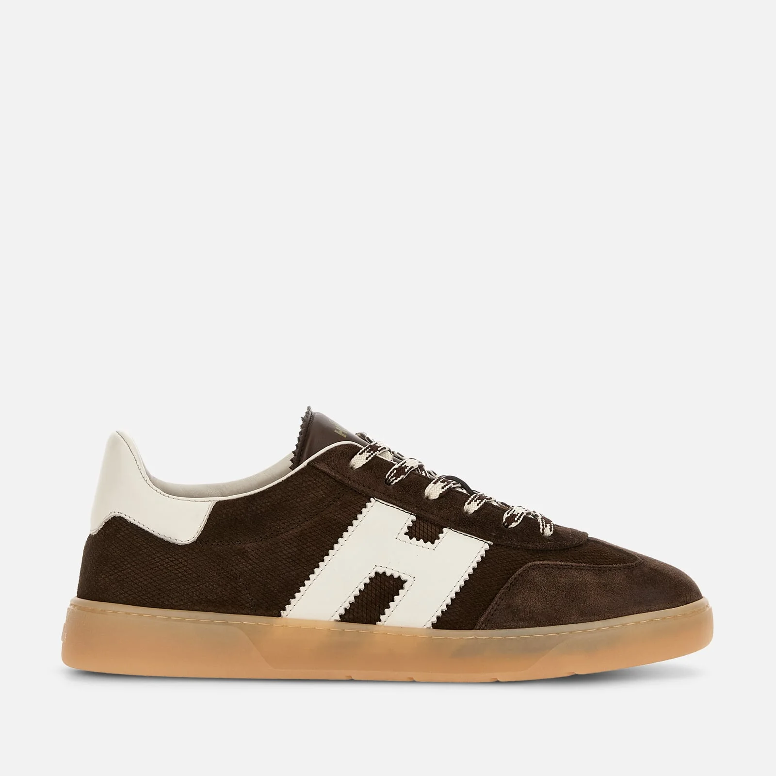 - Men's Hogan Cool Sneakers - Suede upper - Nappa leather side H - Smooth leather detailing - Memory foam insole 0.6 ins - Rubber (TPU) cupsole - Total height 1.1 ins - Maintenance and care cards included - Fabric dustbag included - Additional laces included Perfect mix of retro elements and contemporary lines, the Hogan Cool Sneakers are characterized by a sober and refined look. Featuring a padded tongue, the upper here is crafted in suede, with a nappa leather serrated side H. A reinterpretation of the historic H327 style, the amber-colored outsole recalls the slanted monogram on the tread. The memory foam insole guarantees a cushioned fit.