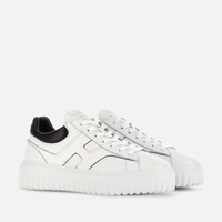 - Men's Hogan H-Stripes Sneakers - Made in Italy - Leather upper - Nappa leather inserts - Side H - Suede detailing - Memory foam insole 0.3 ins - EVA outsole - Total height 1.9 ins - Maintenance and care cards included - Fabric dustbag included - Additional laces included Style with sporty and versatile lines, the H-Stripes sneakers feature an extralight outsole with vertical stripes. The upper, with a compact and balanced design, is characterized by the H that extends across the side. The upper trim, featuring stitching on the back patch, comes with a soft padding. This version is crafted in leather with a memory foam insole that guarantees comfortable cushioning.