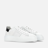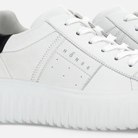 - Men's Hogan H-Stripes Sneakers - Made in Italy - Nappa leather upper - Side band - Memory foam insole 0.3 ins - EVA outsole - Total height 2.3 ins - Maintenance and care cards included - Fabric dustbag included - Additional laces included A new style with sporty and versatile lines, the H-Stripes sneakers feature an extralight outsole with vertical stripes. The upper, with a compact and balanced design, is characterized by a side band with logo. The upper trim, featuring stitching on the back patch, comes with a soft padding. This version is crafted in soft nappa leather, with a memory foam insole that guarantees comfortable cushioning.