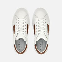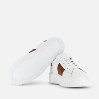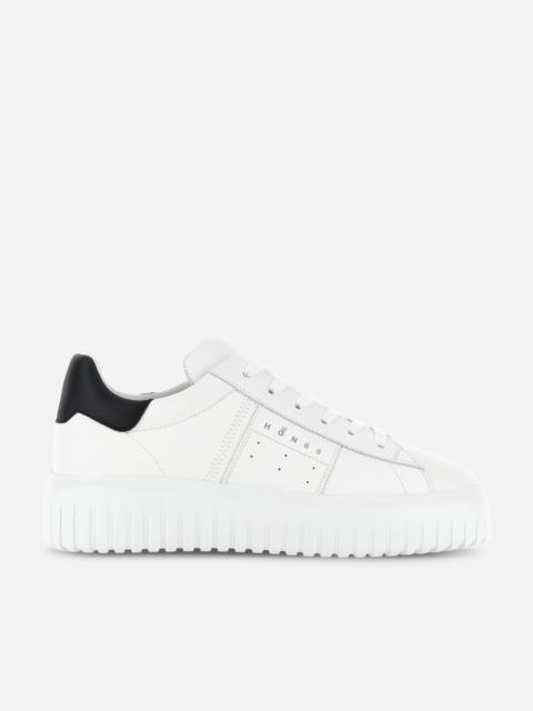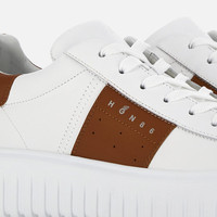 - Men's Hogan H-Stripes Sneakers - Made in Italy - Smooth leather upper - HGN86 logo stamped on the side - Memory foam insole 0.3 ins - EVA outsole - Total height 1.9 ins - Maintenance and care cards included - Fabric dustbag included - Additional laces included A new style with sporty and versatile lines, the H-Stripes sneakers feature an extralight outsole with vertical stripes. The upper, with a compact and balanced design, is characterized by a side band with printed HGN86 logo. The upper trim comes with a soft padding. This version is crafted in smooth leather, with a memory foam insole that guarantees comfortable cushioning.