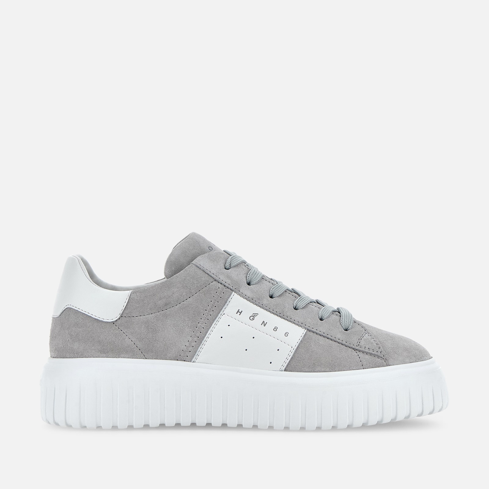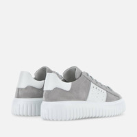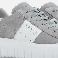 - Men's Hogan H-Stripes Sneakers - Made in Italy - Suede upper - Nappa leather side band - Memory foam insole 0.3 ins - EVA outsole - Total height 2.3 ins - Maintenance and care cards included - Fabric dustbag included - Additional laces included A new style with sporty and versatile lines, the H-Stripes sneakers feature an extralight outsole with vertical stripes. The upper, with a compact and balanced design, is characterized by a side band with logo. The upper trim, featuring stitching on the back patch, comes with a soft padding. This version is crafted in suede, with a memory foam insole that guarantees comfortable cushioning.