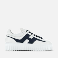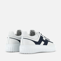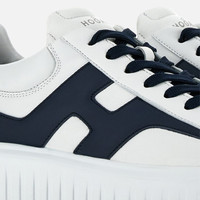 - Men's Hogan H-Stripes Sneakers - Made in Italy - Nappa leather upper - Smooth leather side H - Memory foam insole - Rubber outsole - Maintenance and care cards included - Fabric dustbag included - Additional laces included A new style with sporty and versatile lines, the H-Stripes features an extralight outsole with vertical stripes. The upper, with a compact and balanced design, is characterized by an H that extends across the side. The upper trim, with stitching on the back patch, comes with a soft padding. This version is crafted in nappa and smooth leather, with a memory foam insole that guarantees comfortable cushioning. MOD. HXM6450FE91QZB11G1