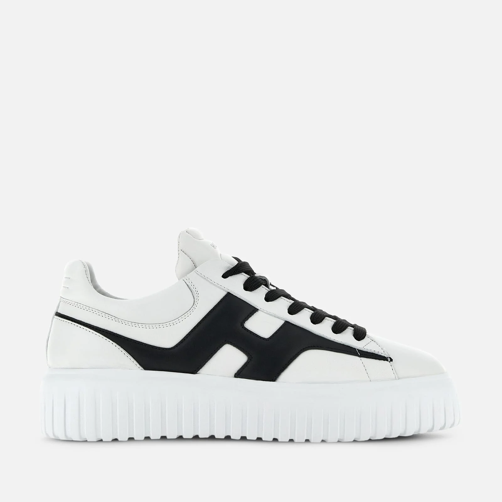 - Men's Hogan H-Stripes Sneakers - Made in Italy - Nappa leather upper - Side H - Memory foam insole - Rubber outsole - Maintenance and care cards included - Fabric dustbag included - Additional laces included A new style with sporty and versatile lines, the H-Stripes features an extralight outsole with vertical stripes. The upper, with a compact and balanced design, is characterized by an H that extends across the side. The upper trim, with stitching on the back patch, comes with a soft padding. This version is crafted in nappa leather, with a memory foam insole that guarantees comfortable cushioning. MOD. HXM6450FE91LE90001