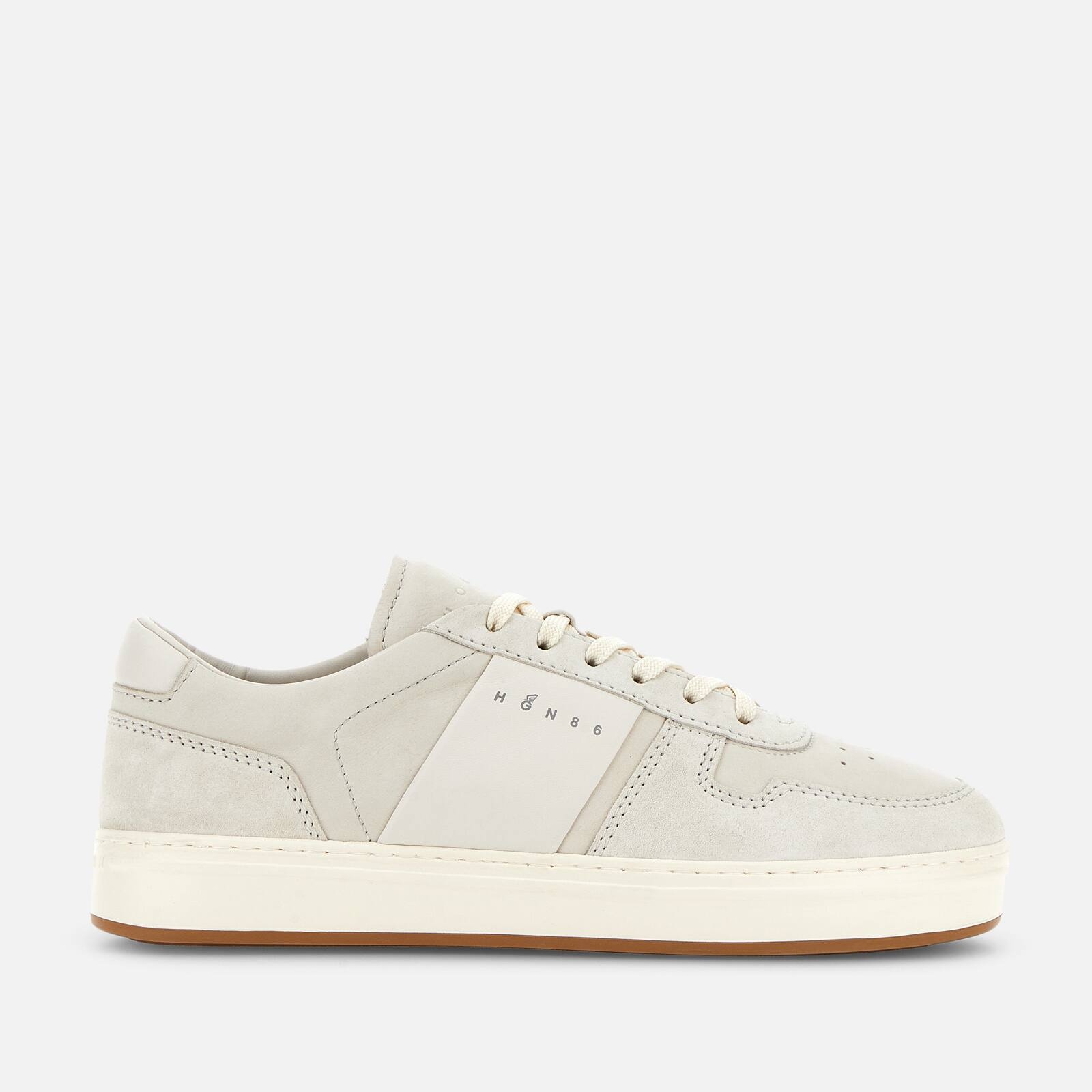 - Men's Hogan H-TV Sneakers - Suede upper - Nubuck inserts - HGN86 logo printed on the side - Memory foam insole 0.3 ins - Rubber outsole - Total height 1.4 ins - Maintenance and care cards included - Fabric dustbag included - Additional laces included Clean lines and crisp definition, a nostalgic throwback to 1980s tech gear is the inspiration for these Hogan H-TV sneakers. Characterized by a lightweight outsole with a minimal style, they feature an upper recalling the lines of the basketball world. Enhanced by the HGN86 logo printed on the side, they come here in suede and nubuck. The memory foam insole guarantees a cushioned fit.