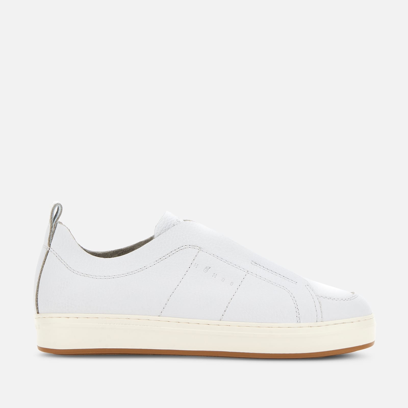 - Men's Hogan H-TV Sneakers - Grained leather upper - HGN86 logo stamped on the side - Concealed elastic inserts - Memory foam insole 0.3 ins - Rubber outsole - Total height 1.4 ins - Maintenance and care cards included - Fabric dustbag included Clean lines and crisp definition, a nostalgic throwback to 1980s tech gear is the inspiration for these Hogan H-TV sneakers. Characterized by a lightweight outsole with a minimal style, they come here with a slip-on upper in hammered effect leather. Enhanced by the HGN86 logo printed on the side, they feature a memory foam insole that guarantees a cushioned fit.