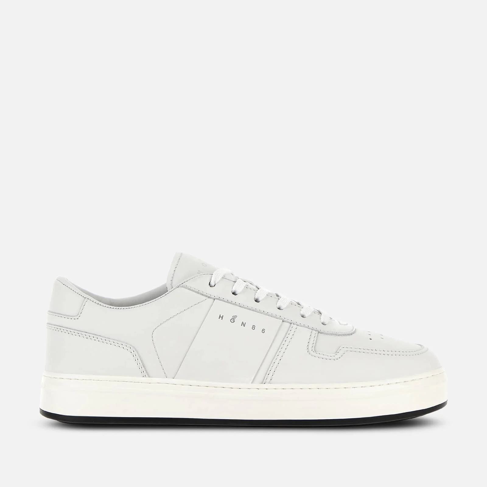 - Men's Hogan H-TV Sneakers - Nappa leather upper - Smooth leather inserts - HGN86 logo stamped on the side - Memory foam insole 0.3 ins - Rubber outsole - Total height 1.4 ins - Maintenance and care cards included - Fabric dustbag included - Additional laces included Clean lines and crisp definition, a nostalgic throwback to 1980s tech gear is the inspiration for these Hogan H-TV sneakers. Characterized by a lightweight outsole with a minimal style, they feature an upper recalling the lines of the basketball world. Enhanced by the HGN86 logo printed on the side, they come here in nappa and smooth leather. The memory foam insole guarantees a cushioned fit.