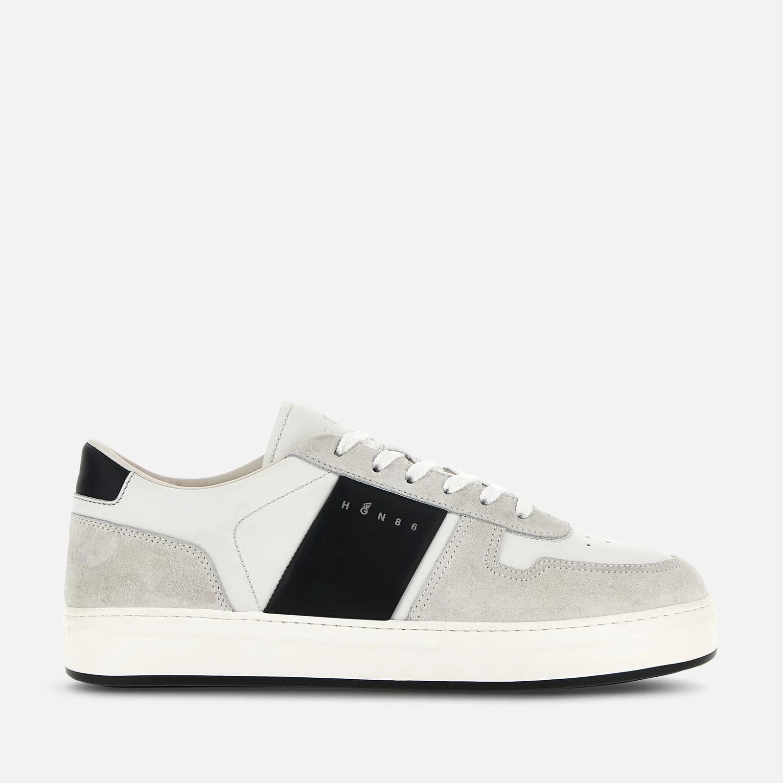 - Men's Hogan H-TV Sneakers - Suede upper - Smooth leather inserts - Nubuck and nappa leather detailing - HGN86 logo stamped on the side - Memory foam insole 0.3 ins - Rubber outsole - Total height 1.4 ins - Maintenance and care cards included - Fabric dustbag included - Additional laces included Clean lines and crisp definition, a nostalgic throwback to 1980s tech gear is the inspiration for these Hogan H-TV sneakers. Characterized by a lightweight outsole with a minimal style, they feature an upper recalling the lines of the basketball world. Enhanced by the HGN86 logo printed on the side, they come here in smooth leather and suede. The memory foam insole guarantees a cushioned fit.