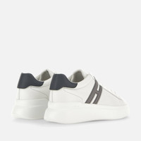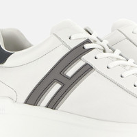 - Men's Hogan H580 Sneakers - Made in Italy - Nappa leather upper - Smooth leather side H and detailing - Memory foam insole 0.3 ins - Rubber outsole - Total height 1.8 ins - Maintenance and care cards included - Fabric dustbag included - Additional laces included The H580 sneakers were designed with the wind and its flow in mind, featuring harmonious volumes and an aerodynamic outsole. The nappa leather upper, with soft and essential lines, is the background of an extended H that ends in a lace pass. A style with an urban casual vocation, featuring a memory foam insole to guarantee a cushioned fit.