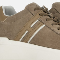 - Men's Hogan H580 Sneakers - Made in Italy - Suede upper - Side H - Smooth leather detailing - Memory foam insole 0.3 ins - Rubber outsole - Total height 1.8 ins - Maintenance and care cards included - Fabric dustbag included The men's H580 sneakers were designed with the wind and its flow in mind, with harmonious volumes and an aerodynamic outsole. The suede upper, with soft and essential lines, is the background of an extended H that ends in a lace pass. A model with an urban casual vocation, with a memory foam insole to guarantee a cushioned fit.