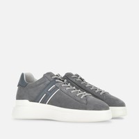 - Men's Hogan H580 Sneakers - Made in Italy - Suede upper - Side H - Smooth leather detailing - Memory foam insole 0.3 ins - Rubber outsole - Total height 1.8 ins - Maintenance and care cards included - Fabric dustbag included The men's H580 sneakers were designed with the wind and its flow in mind, with harmonious volumes and an aerodynamic outsole. The suede upper, with soft and essential lines, is the background of an extended H that ends in a lace pass. A model with an urban casual vocation, with a memory foam insole to guarantee a cushioned fit.