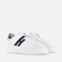 - Men's Hogan H580 Sneakers - Made in Italy - Nappa leather upper - Smooth leather side H - Memory foam insole 0.3 ins - Rubber outsole - Total height 1.8 ins - Maintenance and care cards included - Fabric dustbag included - Additional laces included The men's H580 sneakers were designed with the wind and its flow in mind, featuring harmonious volumes and an aerodynamic outsole. The soft nappa leather upper, with soft and essential lines, is the background of an extended H that ends in a lace pass. A style with an urban casual vocation, featuring a memory foam insole to guarantee a cushioned fit.