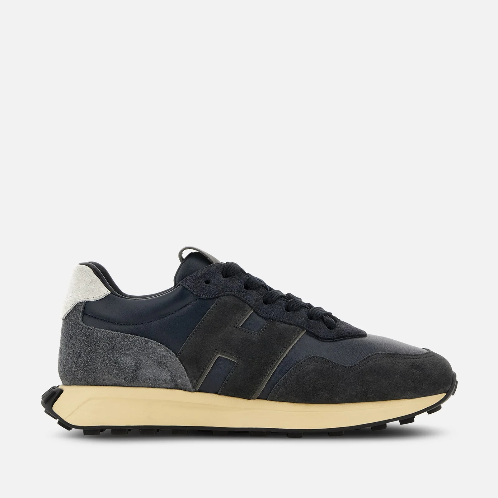 - Men's Hogan H601 Sneakers - Made in Italy - Suede and nappa leather upper - Smooth leather detailing - Suede side H - Memory foam insole 0.3 ins - Rubber outsole - Total height 1.8 ins - Maintenance and care cards included - Fabric dustbag included - Additional laces included Bold look and retro vibes come together in the men's Hogan H601 sneakers. Designed for optimal grip, the lightweight outsole comes with a tread with distinctive H-shaped spikes. These sneakers feature a suede and nappa leather upper, with suede side H. The memory foam insole guarantees a comfortable fit.