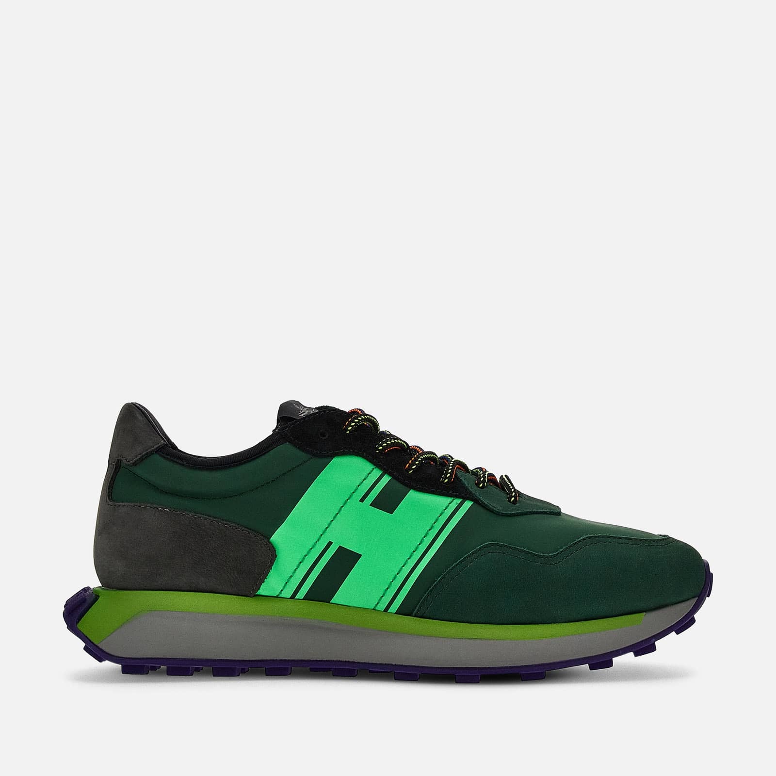 - Men's Hogan H601 Sneakers - Made in Italy - Nubuck upper - Technical fabric inserts - Side H - Suede detailing - Memory foam insole 0.3 ins - Rubber outsole with H-shaped studs - Total height 1.8 ins - Maintenance and care cards included - Fabric dustbag included Bold look, cool character and retro suggestions come together in the Hogan H601 men's sneakers. Designed for optimal grip, the lightweight outsole reinterprets the historic 261 style, adding a side groove and an H-shaped stud tread. The upper comes in nubuck and technical fabric, with a screen-printed H on the side. The memory foam insole guarantees a cushioned fit. MOD. HXM6070EG034F8819Q