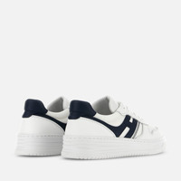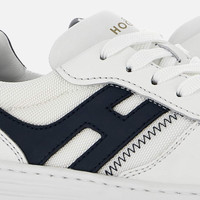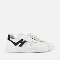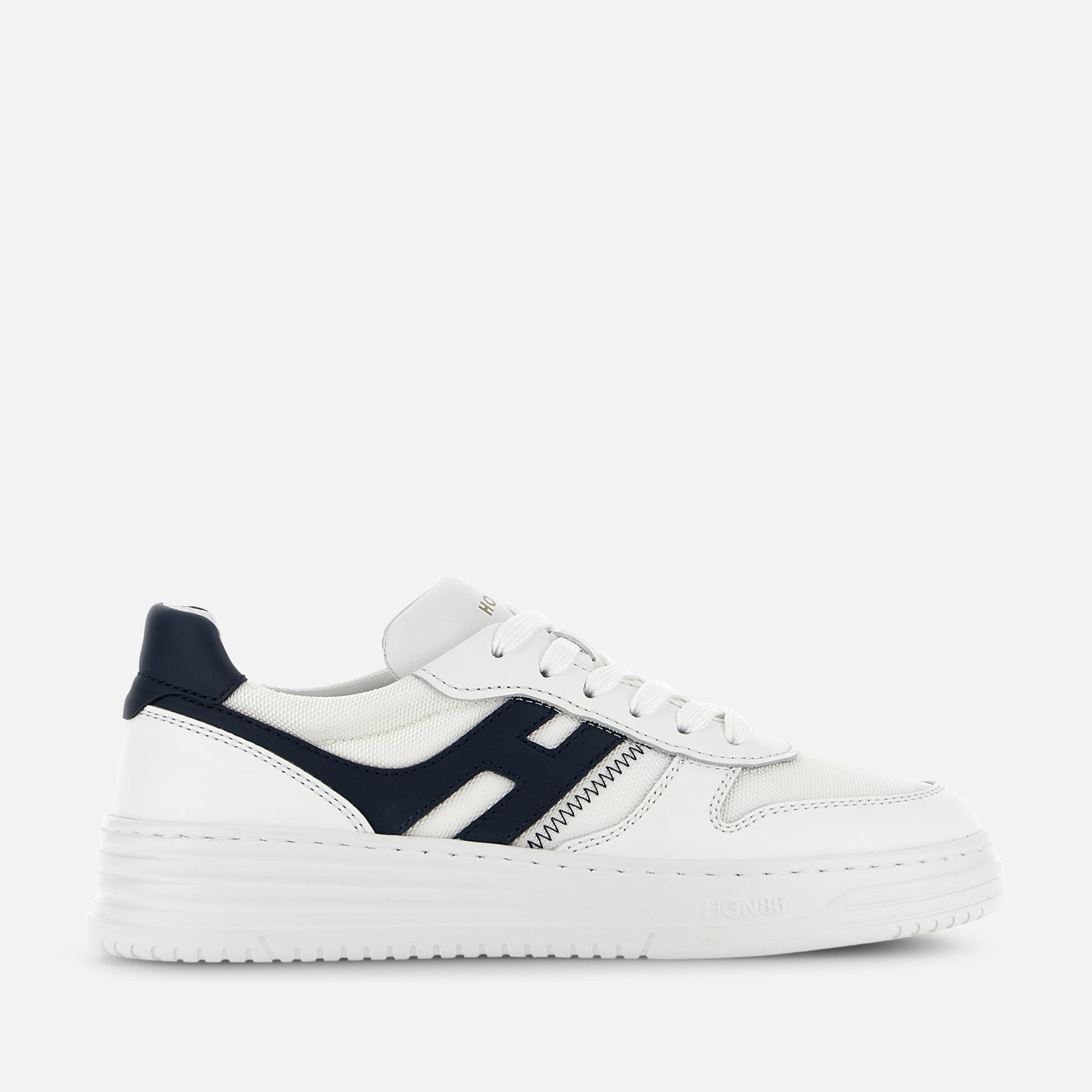 - Men's Hogan H630 Sneakers - Made in Italy - Smooth leather upper - Technical fabric inserts - Side H - Zigzag stitching detailing - Memory foam insole 0.4 ins - Rubber outsole - Total height 1.5 ins - Maintenance and care cards included - Fabric dustbag included - Additional laces included The Hogan H630 sneakers combine lines inspired by the basketball world and classic brand style. The leather upper with technical fabric inserts features an extended H that envelopes the heel. The outsole is crafted in extralight EVA, with embossed logo on the side and shaded stripes that reinterpret the historic Rebel grooves. Must-have for the contemporary wardrobe, this dynamic style is complemented by memory foam insole that ensures softness and cushioning.